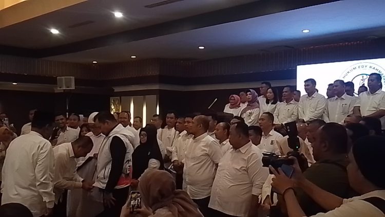 Bacalon Gubernur Sumut H.Edy Rahmayadi hadir langsung bersama tim pemenangan di acara pelantikan. Tim kuasa Hukum Edy Rahmayadi, di antaranya Ketua Yance Aswin, Sekretaris Bonanda Japatani dan Bendahara Bambang Abimanyu.
