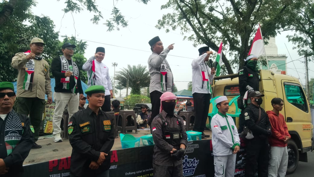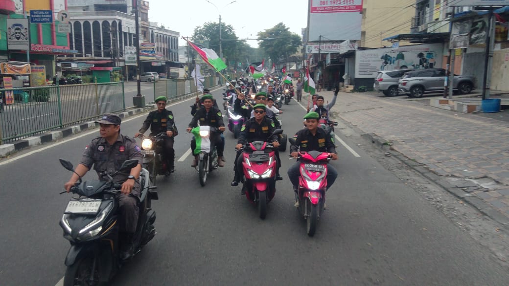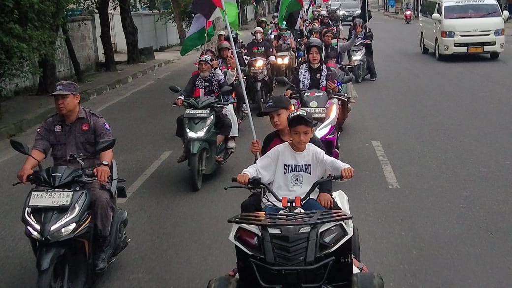 Menggelorakan kembali Ghirah/semangat untuk Membela perjuangan Kemerdekaan Mujahid Muslim Gaza-Palestina, Aliansi Ormas- ormas Islam dan Ummat Islam Sumatera Utara, Minggu (9/2/2025) kembali turun ke jalan dengan Berkonvoi sambil menyuarakan dan menyerukan Boikot Produk produk terafiliasi Israel, kepada warga masyarakat di seputaran jalan-jalan di Kota Medan.