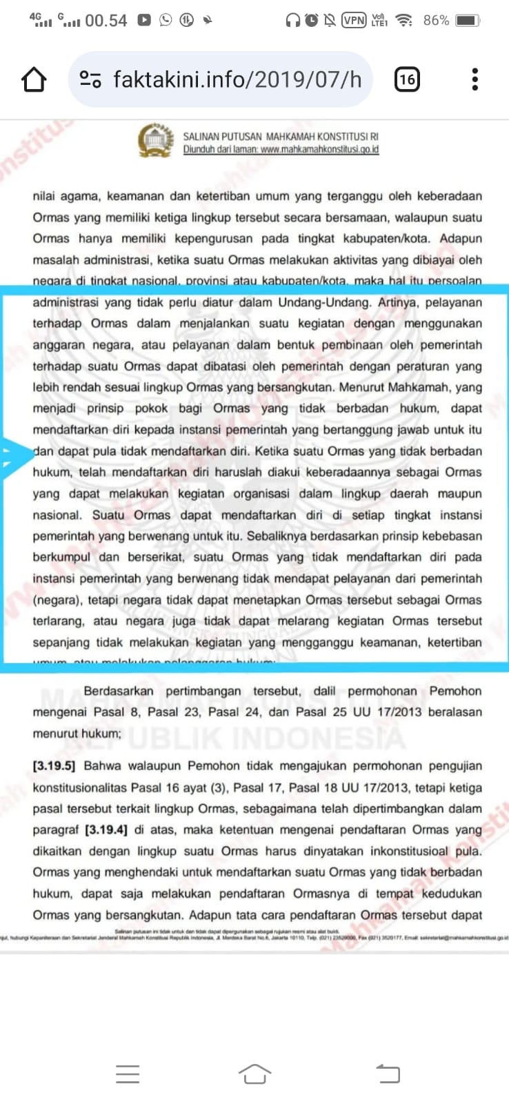 Surat Penegasan Mahkamah Agung Terkait Keberadaan Ormas.
