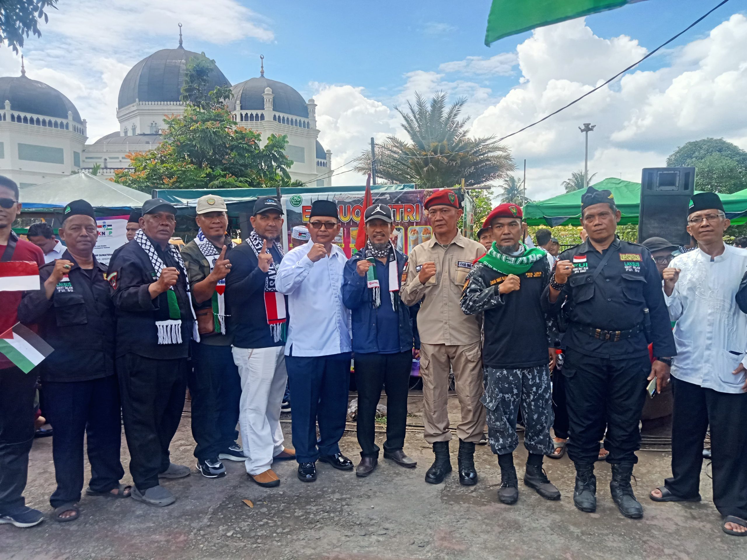 KNRP Sumut Gelar Aksi Peringatan 2 Tahun Genosida Zionis Israel di Masjid Raya Al Mashun.