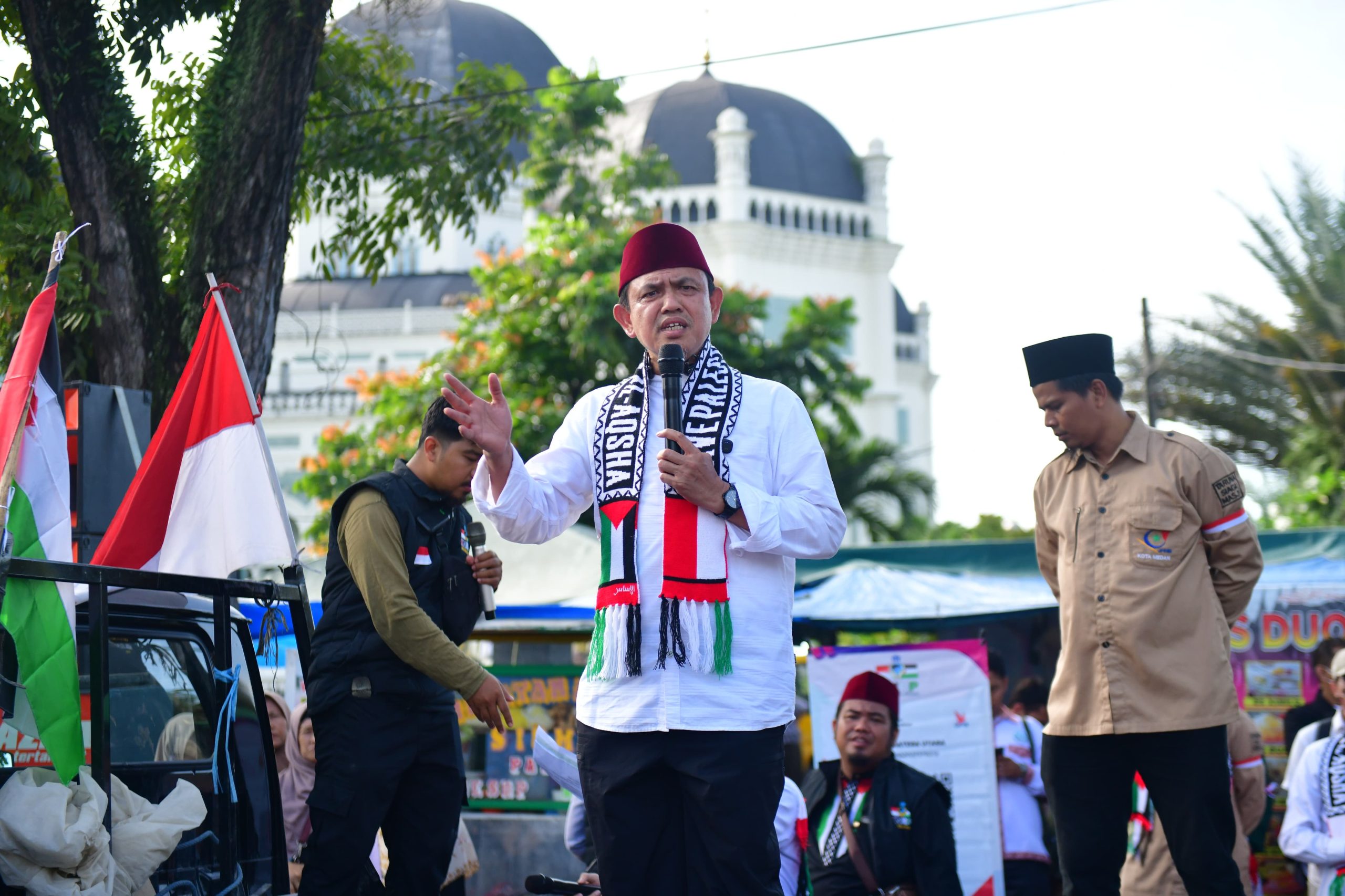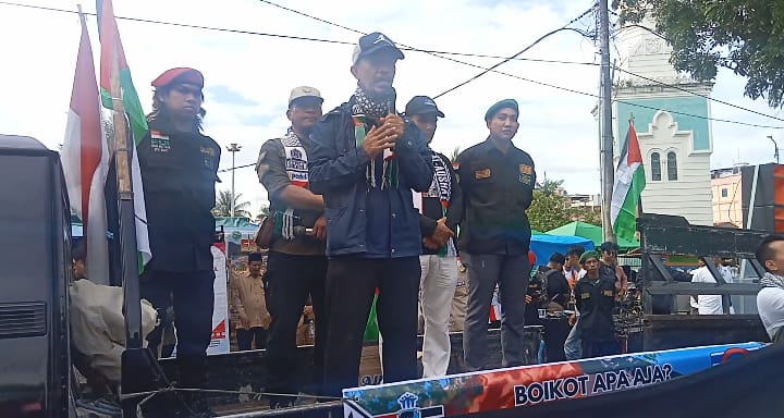 “Sudah dua tahun sejak agresi brutal besar-besaran yang dilakukan Zionis Israel terhadap rakyat Gaza, dan hingga kini penderitaan rakyat Palestina belum berakhir. Kita hadir di sini untuk menunjukkan bahwa rakyat Indonesia, khususnya di Sumatera Utara, tidak tinggal diam terhadap penjajahan dan pembantaian terhadap saudara-saudara kita di Palestina,” ujar Haris dalam orasinya.