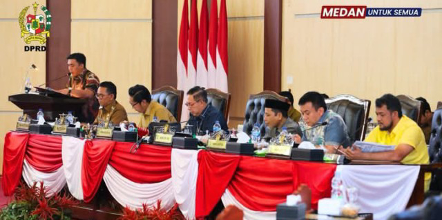 Rapat yang berlangsung di ruang rapat paripurna DPRD Kota Medan itu dipimpin Ketua DPRD Kota Medan, Wong Chun Sen, didampingi para Wakil Ketua yakni Rajudin Sagala, Zulkarnaen, dan Hadi Suhendra, serta dihadiri seluruh anggota dewan.