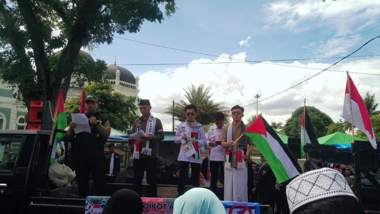 KNRP Sumut Gelar Aksi Peringatan 2 Tahun Genosida Zionis Israel di Masjid Raya Al Mashun.